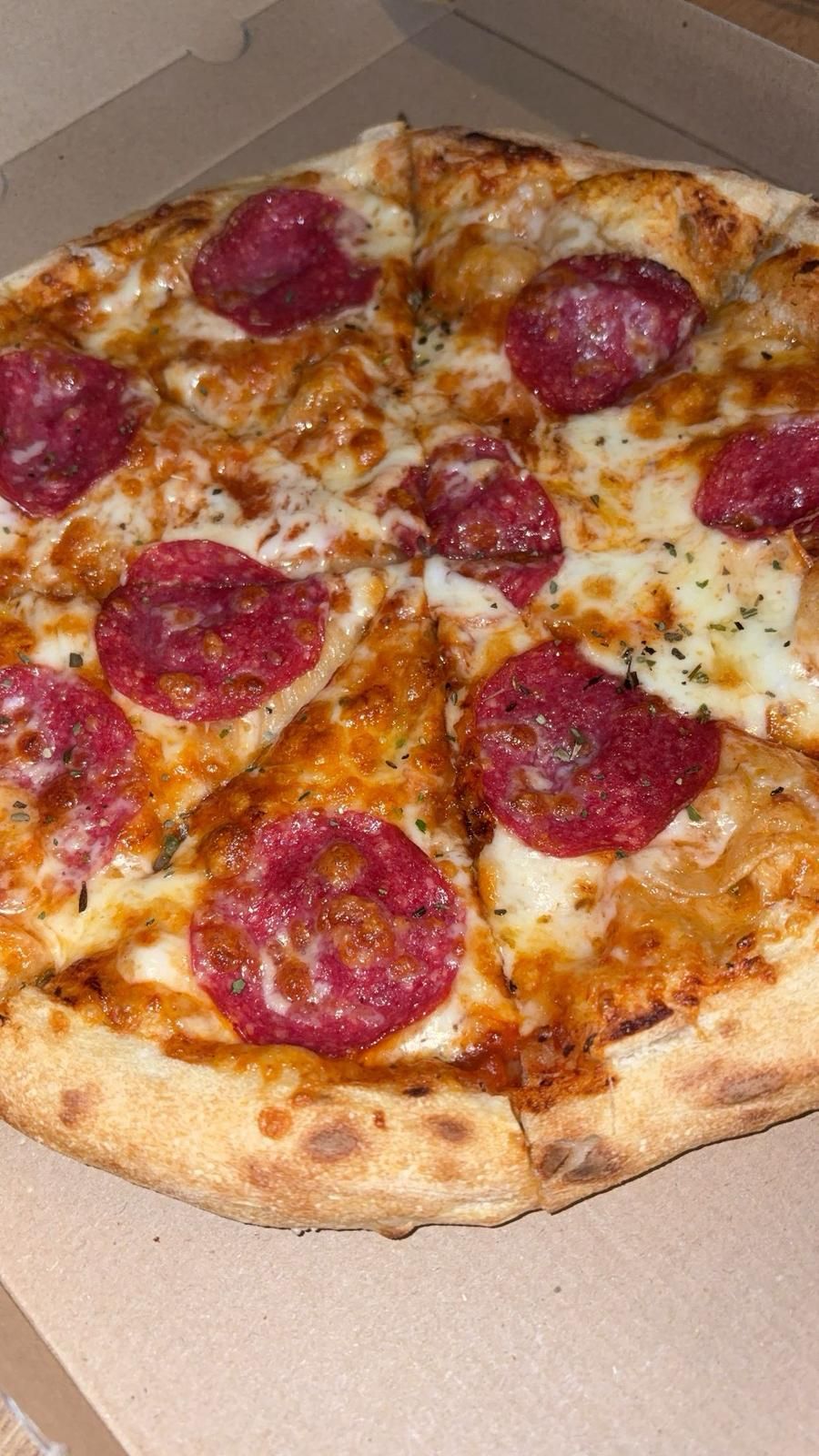 sos pomidorowy, ser, salami pepperoni, kiełbasa, boczek, pieczarki -