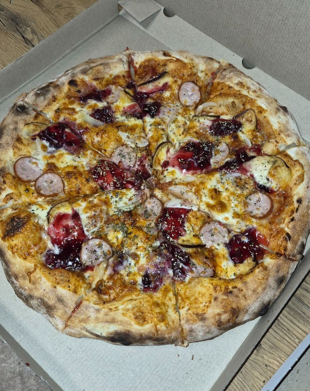 sos pomidorowy, ser, szynka, oliwki, cebula, pomidorki, papryczka jalapeno, ser feta, tzatzyki -