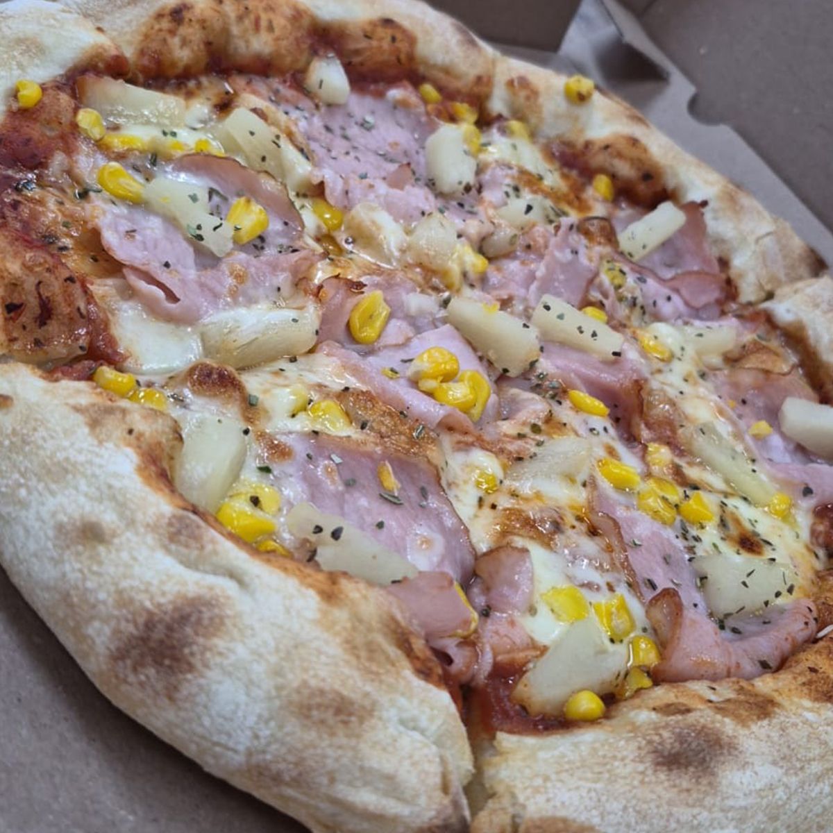 sos pomidorowy, ser, pieczarki, szynka, kukurydza, ananas, boczek, słonecznik -